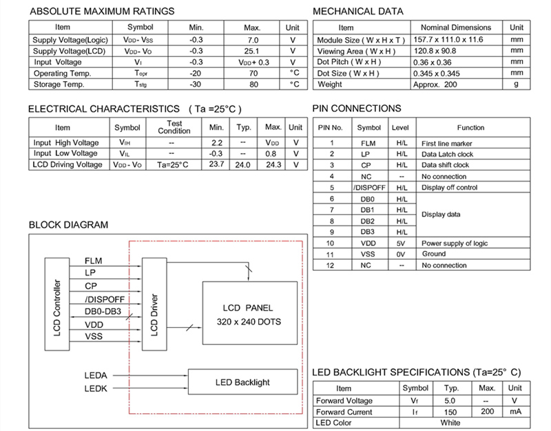 Display Mode: STN Negative Blue/FSTN Positive or Negative