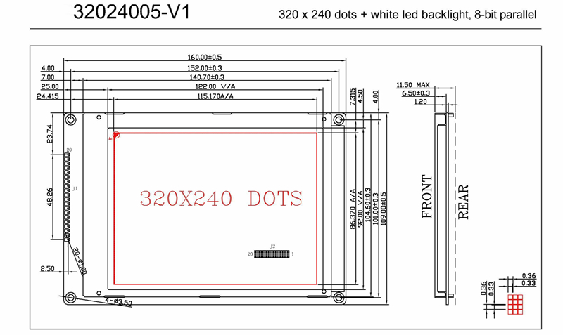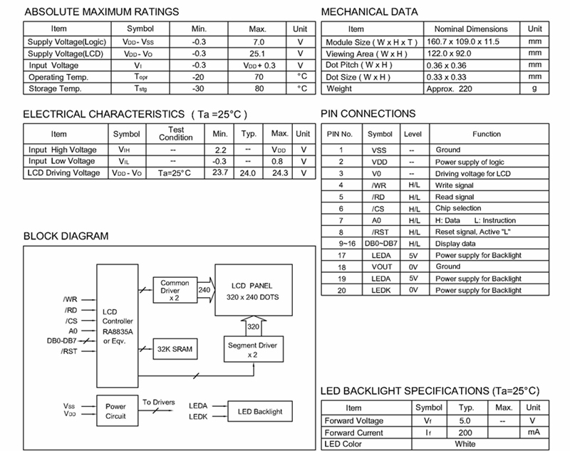 Viewing Area: 122.0X92.0mmDot Size: 0.33X0.33mm