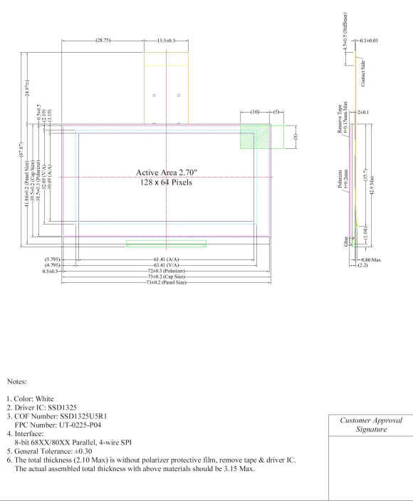 Panel Size : 73.00 × 41.86 × 2.00 (mm) including “Anti-Glare polarizer”