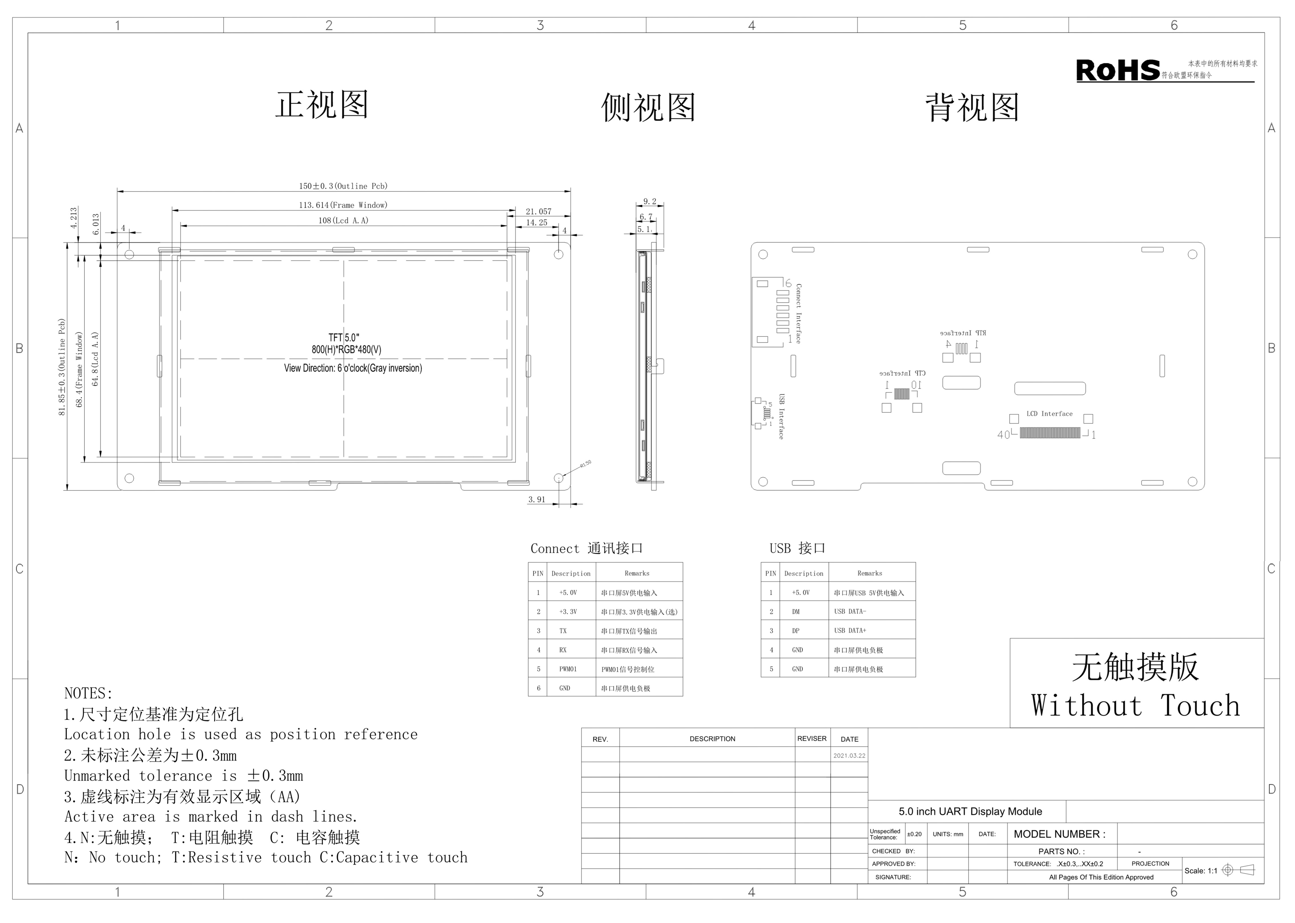 Power consumption: Back Light Power ON:3.5W; Back Light Power off:1.6W