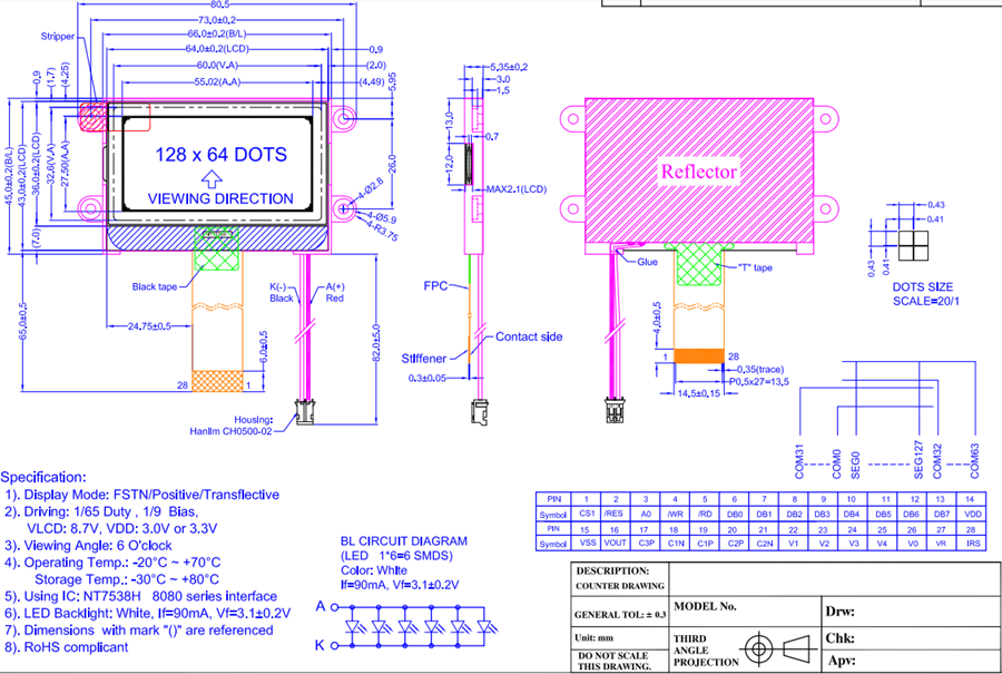 Display Resolution 128*64 dots
