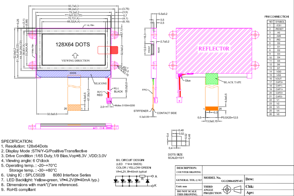 Dot pitch: 0.52mm(L)*0.52mm(W)
