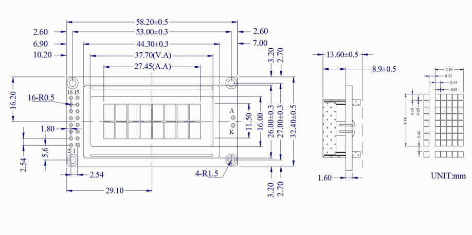 Module size (W*H*T): 58.2*32.4*13.6 mm