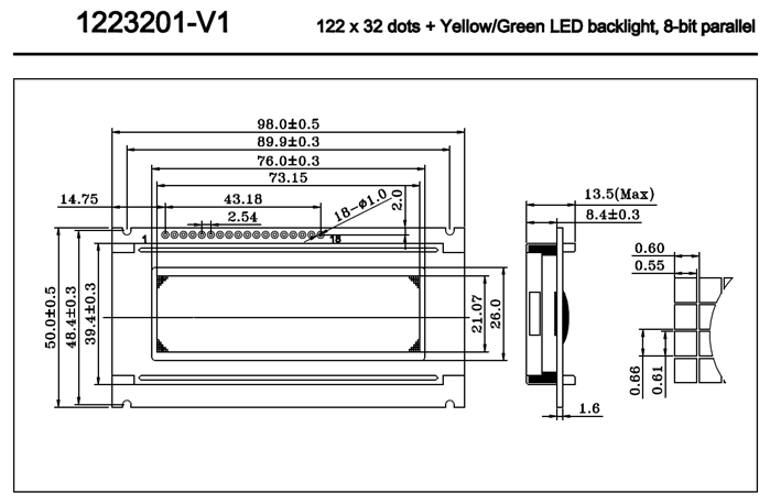 Module size (W*H*T): 98.0*50.0*13.5 mm